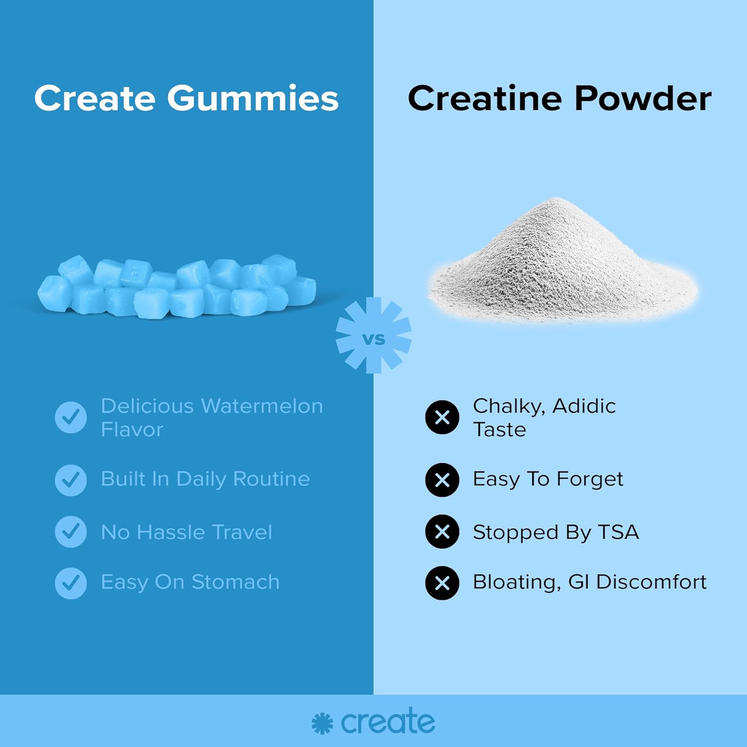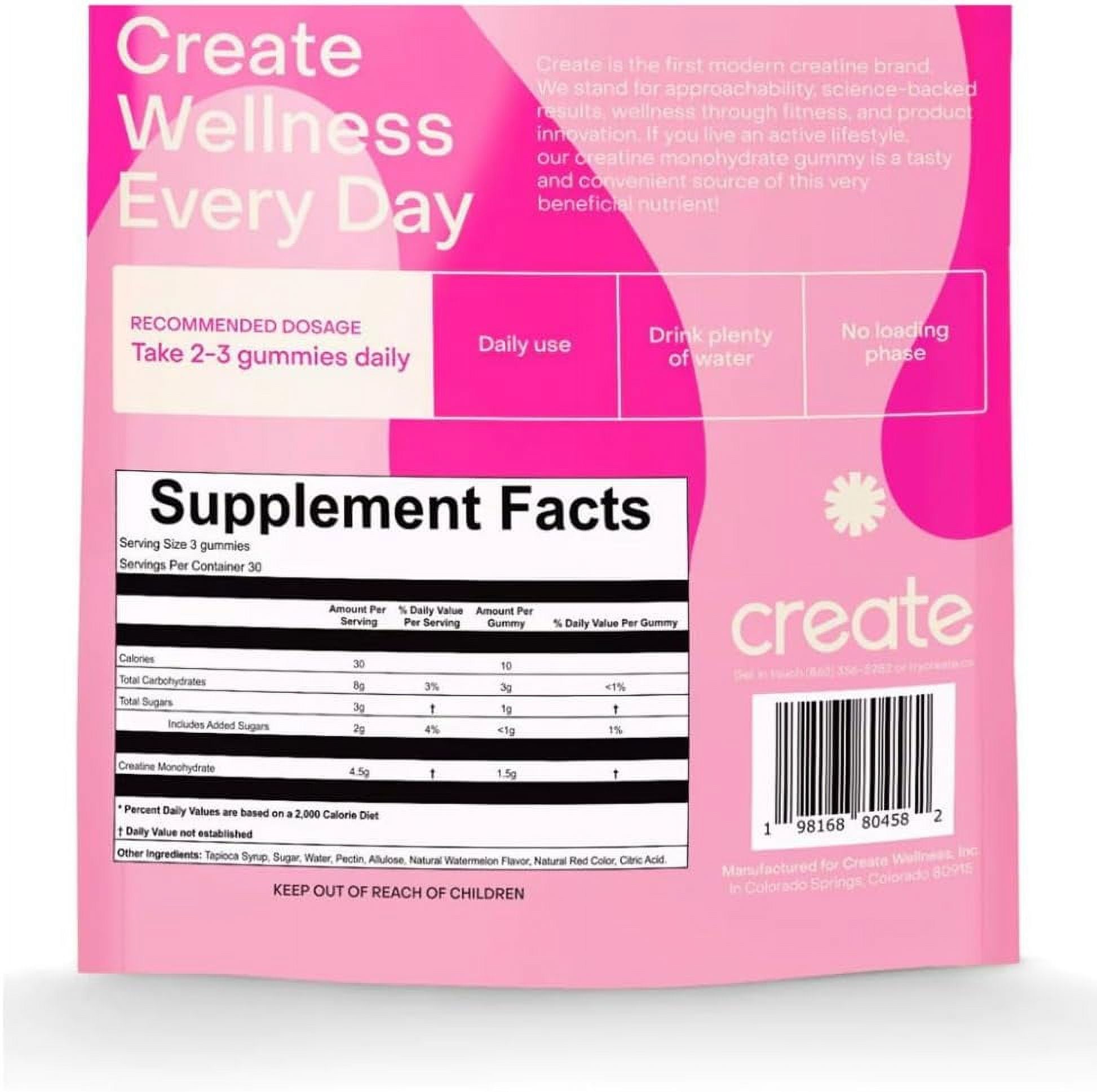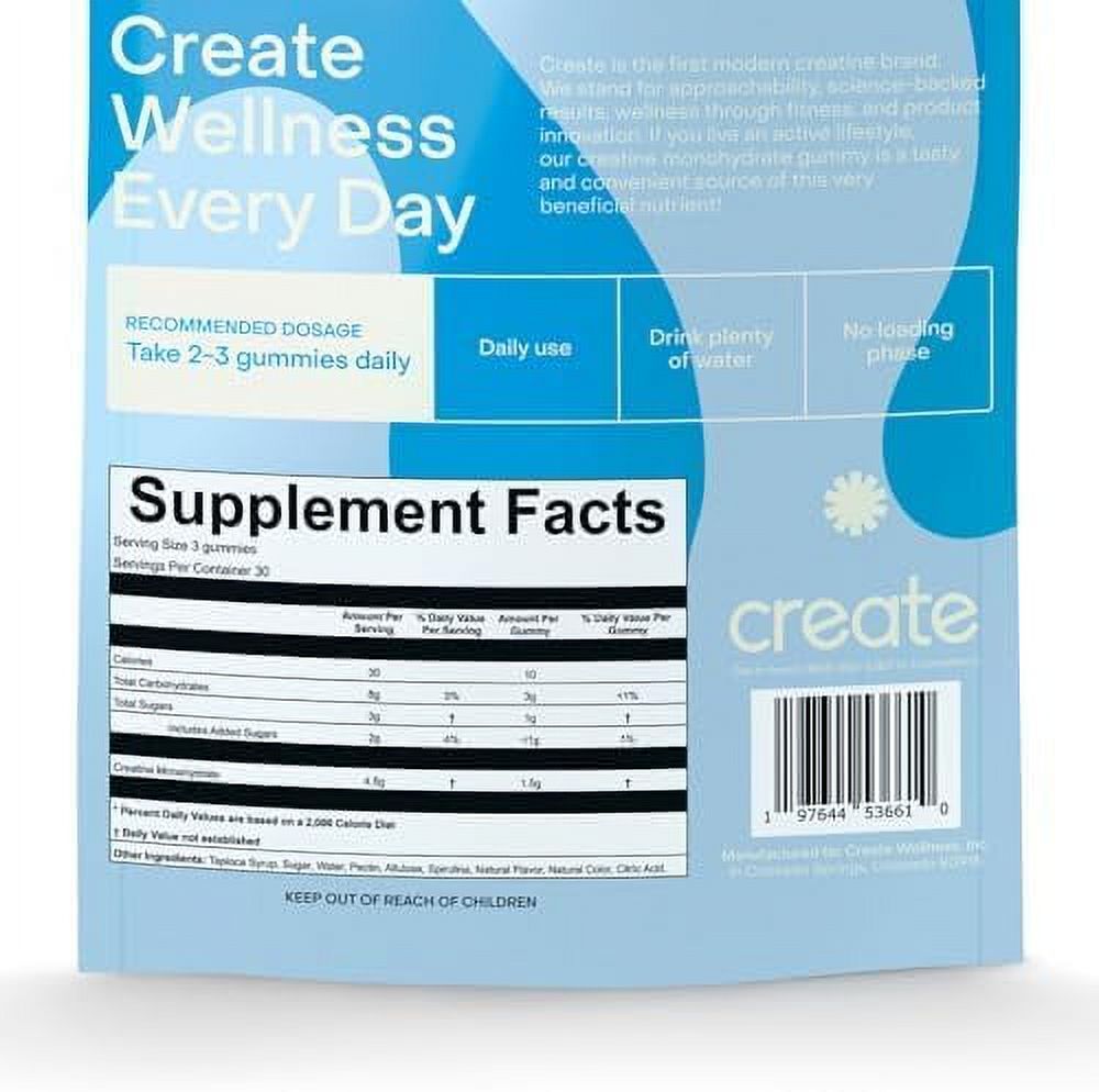 Create Creatine Monohydrate Gummies for Men & Women, Boost Focus, Strength, and Endurance, Anti-Melting Formula, Vegan, Gluten-Free, Non-GMO, 1.5g of Creatine per Gummy (Blue Raspberry, 90ct)