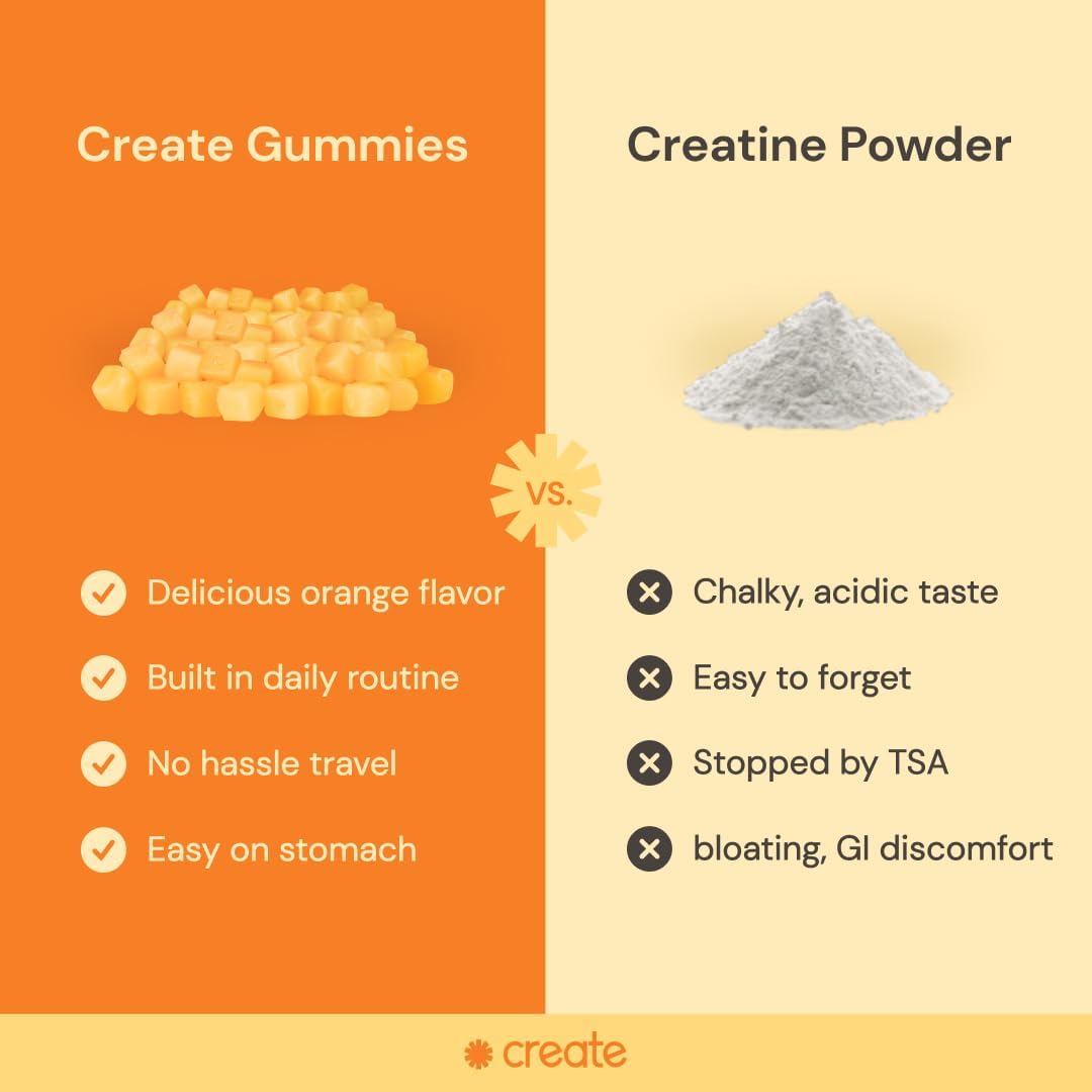 Create Creatine Monohydrate Gummies for Men & Women, Boost Focus, Strength, and Endurance, Anti-Melting Formula, Vegan, Gluten-Free, Non-GMO, 1.5g of Creatine per Gummy (Orange, 90ct)