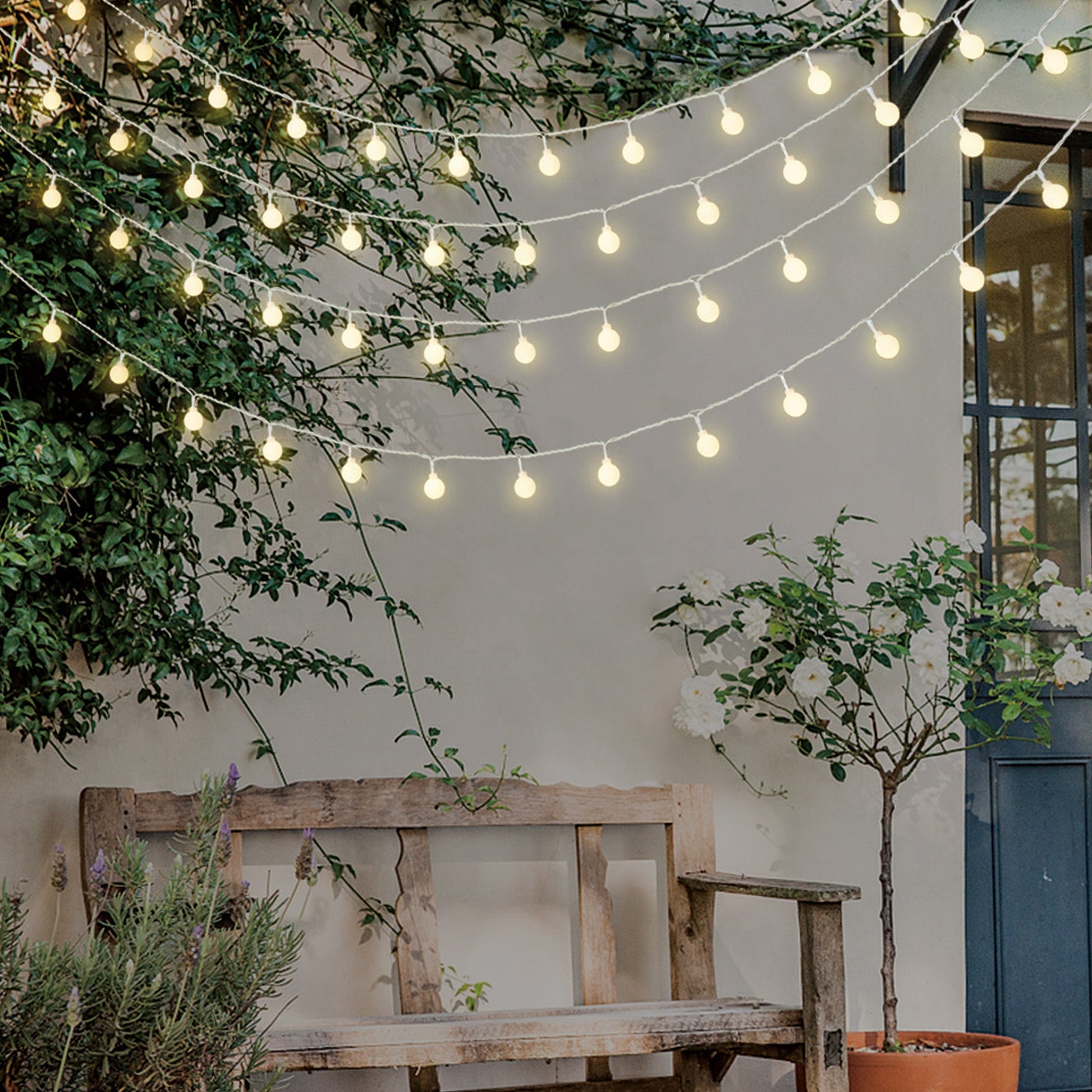 50-Count LED Globe Lights, with Frosted White G20 Globes is a fun way to add warm white LED light to any area of your home. This string of steady-burning LED globe lights has a total length of 21 feet 3 inches and a lighted length of 16 feet 4 inches, and is a great lighting accent around the house, the dorm room, or for a special occasion. This set of globe lights come with a 5-foot lead wire and a UL-approved indoor adaptor that plugs directly into an outlet so that you can safely use these lights inside to add ambiance to any seating area. The 50-Count LED Globe Lights, with Frosted White G20 Globes is the perfect way to light up your space.