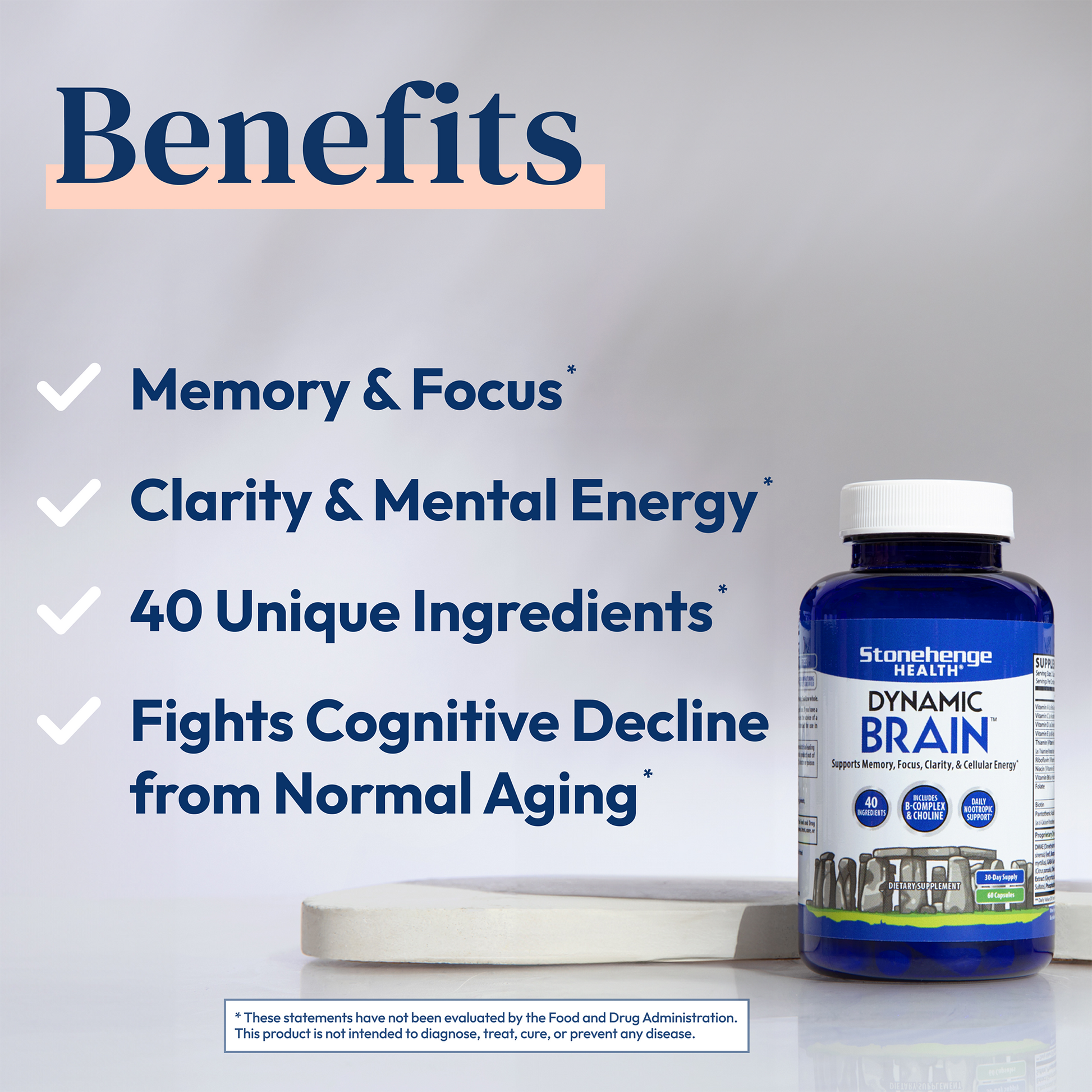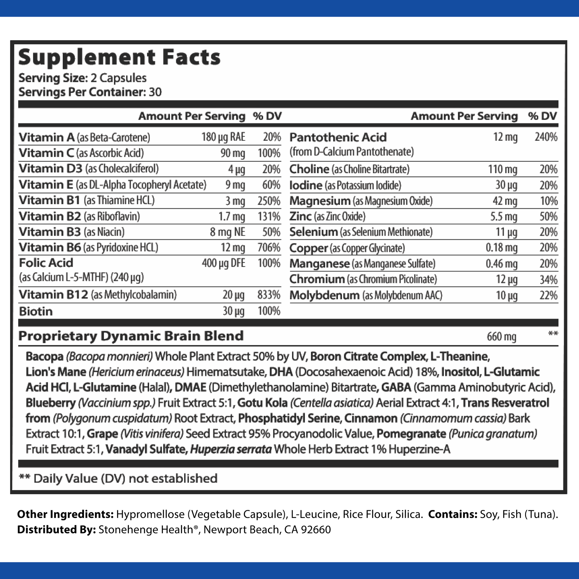 Stonehenge Health Dynamic Brain Nootropic Supplement For Enhanced Memory, Focus, & Learning, 60 Caps
