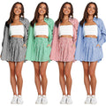 Women's Fashion Shirt Striped Long Sleeve Split Two-piece Set