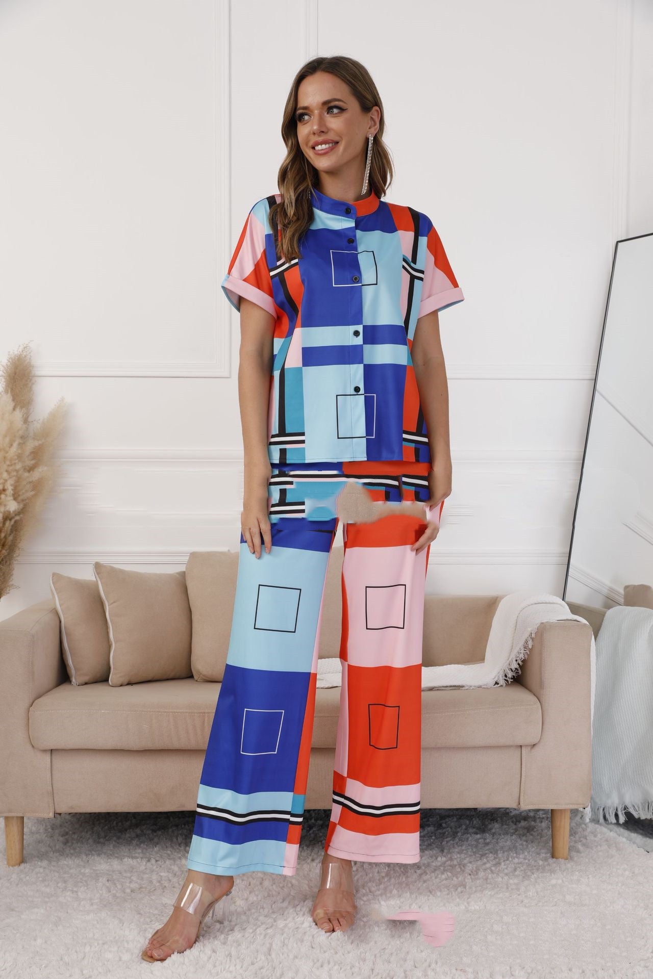 Women's Printed Shirt Short Sleeve Pants Temperament Commuter Suit