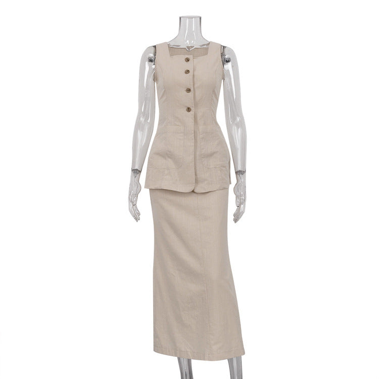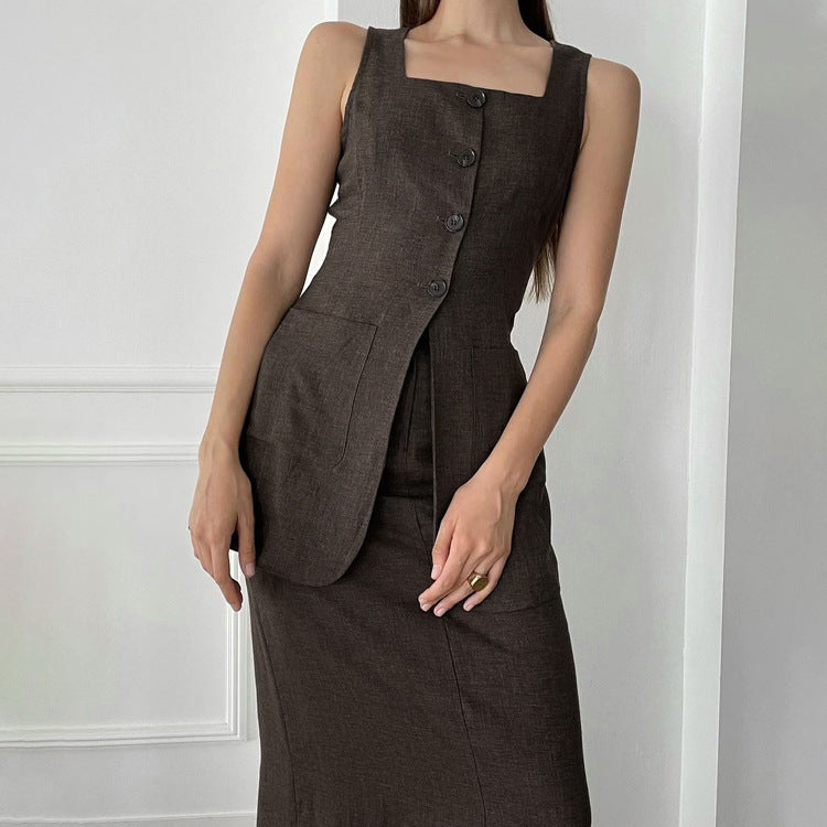 Women's Sleeveless Waistcoat Vest Skirt Suit
